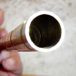 | La giunzione non è a vista, ma è realizzata tramite un manicotto filettato nel fondo, dentro il quale di avvita , a scomparsa, il “maschio” della filettatura. La giunzione è molto più solida ed altrettanto più bella di quella normale. | |||