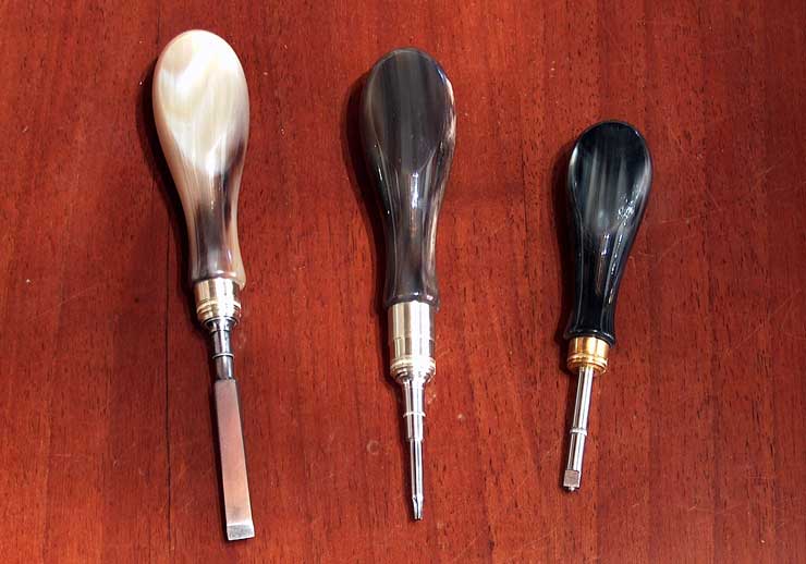 cacciaviti con manico in corno di diverse varietà |